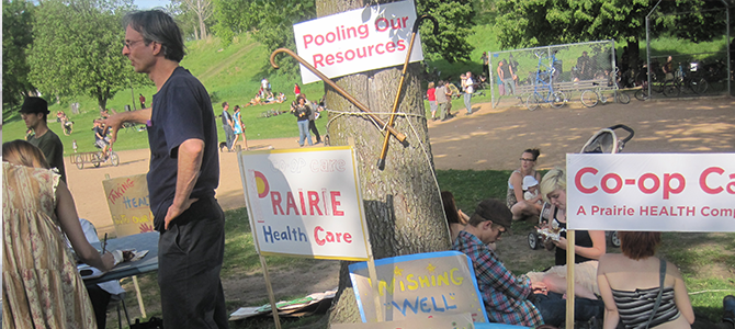 Co-op Care: A Prairie HEALTH Companion proposes to be Minnesota’s first large-scale, non-profit, cooperative health insurance pool for individuals, uninsured, co-ops, small businesses, and non-profits. Unlike profit-driven HMOs, our goal is to serve people based on need, and improve the health of our members and the community.